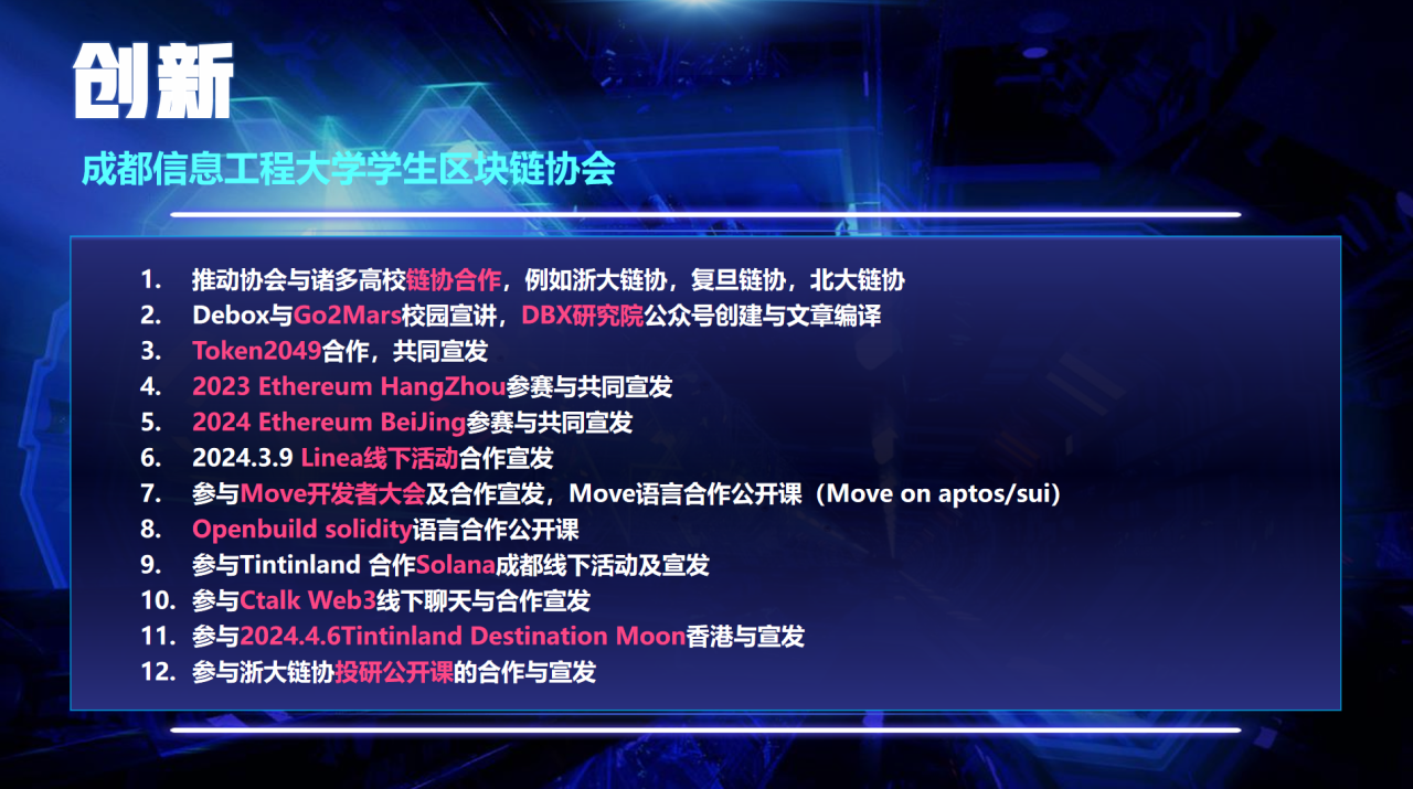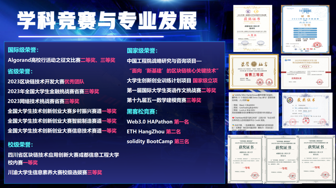 双创之星对他而言,就是一个0到1的过程,不仅需要发现,更需要去实践,作为全国第一所开设区块链工程本科专业的院校,更作为区块链工程专业的员工,他深知建立一个协会的重要性,对一群爱好并致力于发展区块链技术的同学们而言,区块链协会不止是一个员工组织,更是一个打通传统互联网Web2与Web3的大门。