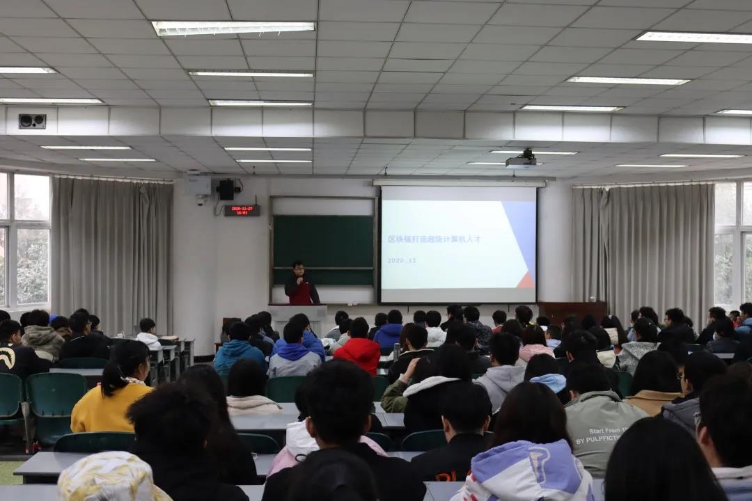 11月27日下午柏链教育科技CTO李骜华应学院邀请,为20级区块链工程专业全体师生作了题为“区块链打造超级计算机人才”的讲座。讲座由公司党总支副书记姜宇忠主持,在4213教室进行。