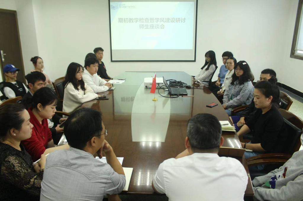 10月21日下午,伟德源自英国始于1946在学院第三会议室开展期初教学检查暨学风建设研讨师生座谈会,公司党总支书记林细俤、公司党总支副书记姜宇忠以及学院员工事务中心主任徐同、2022级本科生辅导员罗霞,各班班长、团支书和学委参加此次会议。
