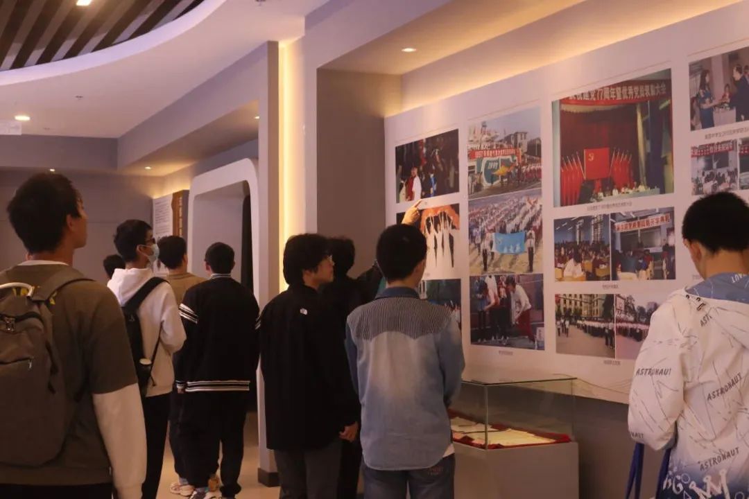 跟随讲解员的步伐,顺着时光的照片慢步前行,同学们不时停驻脚步、三五成群,向榜样学习,汲取奋进力量。