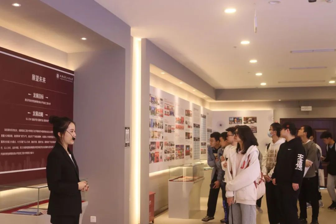 参观过程中,讲解员为新生们梳理了建大发展的历史脉络,并用生动的语言带领同学们一起重温了每一辈成信人的艰辛奋斗史和成信大丰富的荣誉史,带领同学们了解团队建设、科技服务以及党建思想工作等内容。