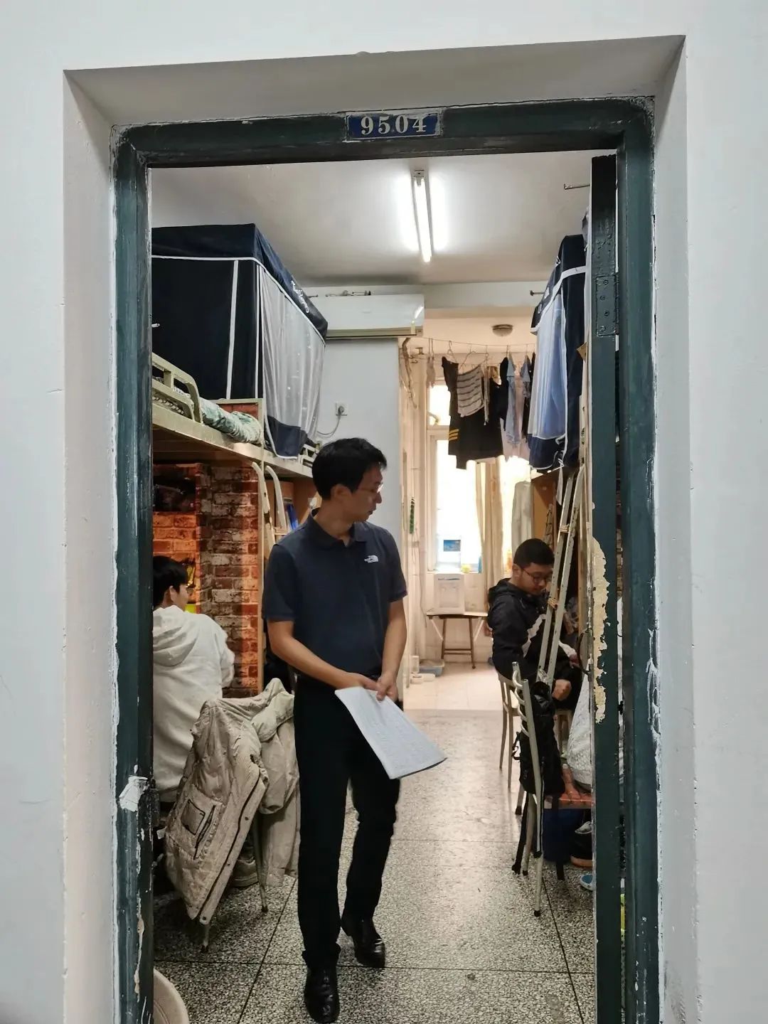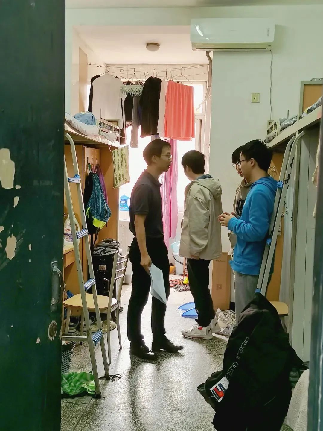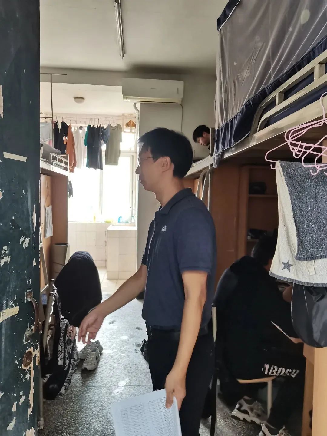 为督促员工养成良好卫生习惯、排查宿舍安全隐患,11月10日中午,公司党委书记林细俤、公司党委副书记姜宇忠、员工事务中心主任徐同、2022级本科生辅导员罗霞走访学院员工寝室,对学院宿舍综合情况进行检查。