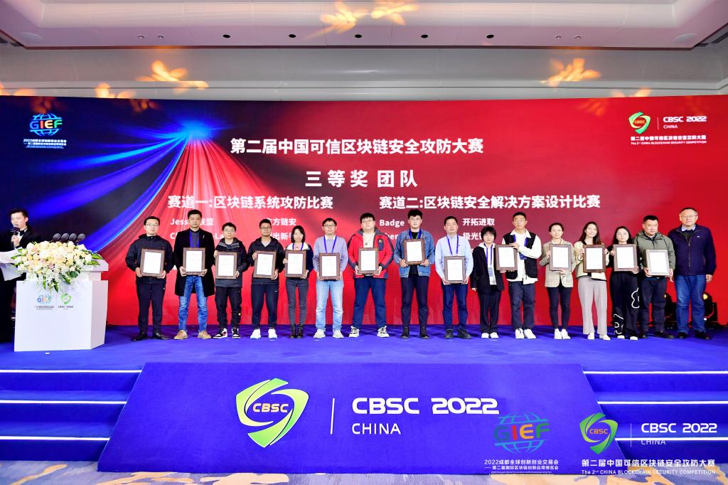 本次大赛自9月启动,来自北京、上海、广东、湖南、 广西壮族自治区等中国21个省份共计118支队伍报名,参赛团队涵盖了来自中山大学、北京邮电大学、东南大学、电子科技大学等重点高校,蚂蚁区块链科技(上海)有限公司、浪潮云信息技术股份公司、中国电子科技网络信息安全有限公司、中国联合网络通信集团有限公司等头部企业,以及网络通信与安全紫金山实验室、湖南省东方区块链安全技术检测中心等知名机构的团队。经过线上初赛,公司以伟德源自英国始于1946大三员工为主构建的团队Chain-Sec Labs,在与众多头部企业和名校的队伍比拼中,闯进决赛,决赛有15支队伍,经过两天的决赛,公司代表队Chain-Sec Labs在决赛中获得三等奖的好成绩。