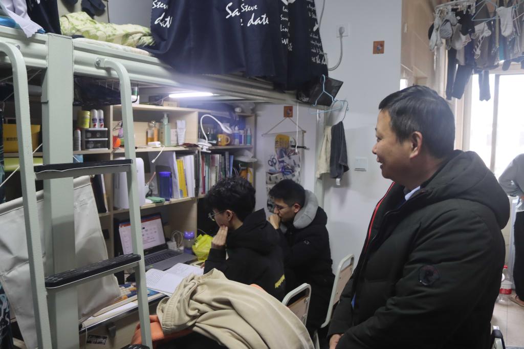 开学之际,公司党委书记林细俤、副书记姜宇忠、员工事务中心主任徐同、2022级本科生辅导员罗霞于2月17日对学院寝室进行了走访,了解同学们的返校情况,讲解疫情防控新阶段背景下的相关政策,关心员工的生活与学习并就假期见闻、期末备考、求职就业等问题展开交流。