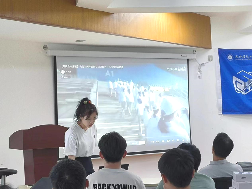 罗霞向志愿者们播放了一条华北师大的老员工们担任冬奥会志愿者期间的VLOG,同时向志愿者们强调了一些注意事项,让大家对工作流程有一个更熟悉的认识。罗霞鼓励志愿者们:“虽然这个过程会很辛苦,但一切辛苦都是值得的,加油坚持下去”。