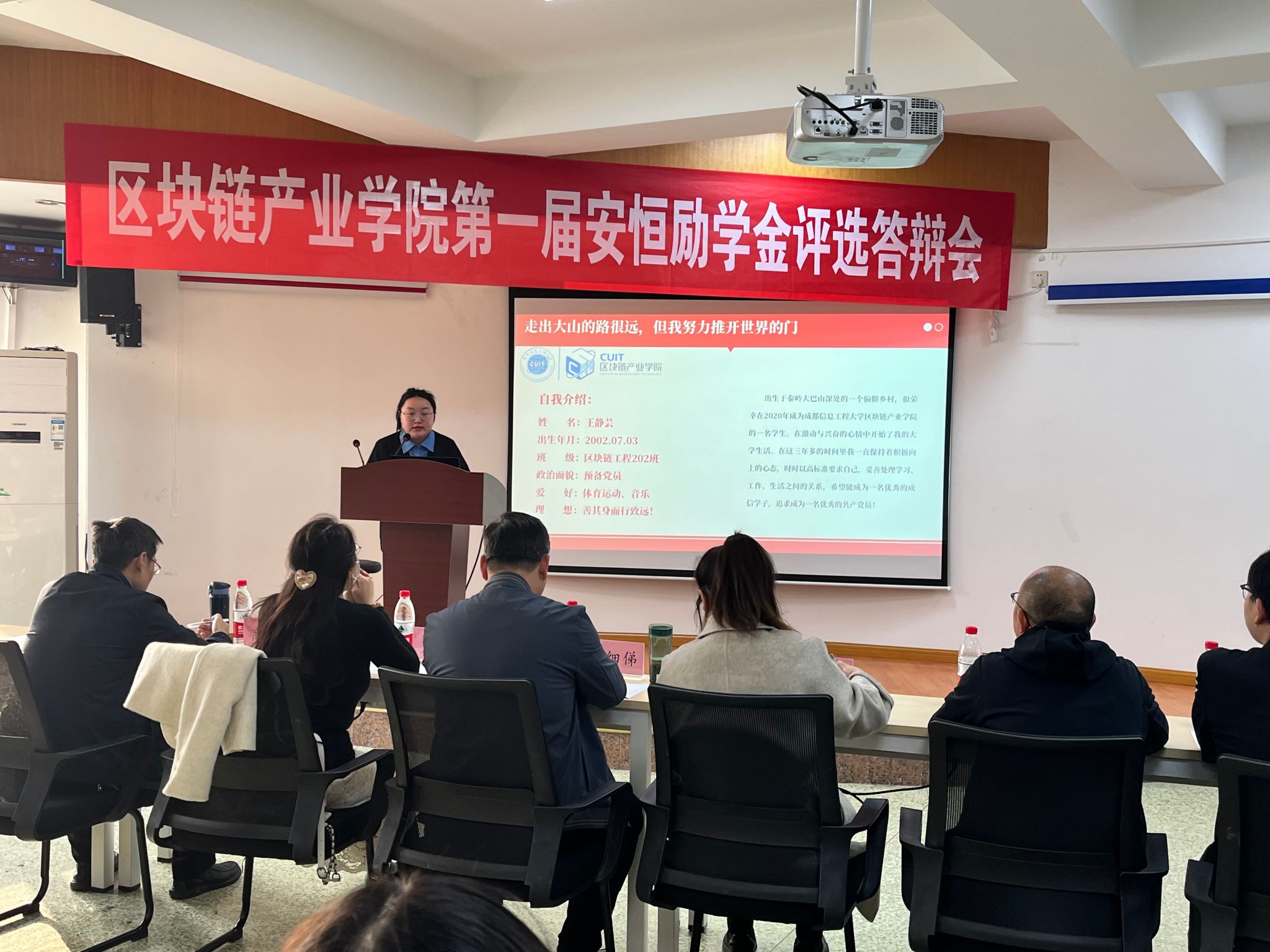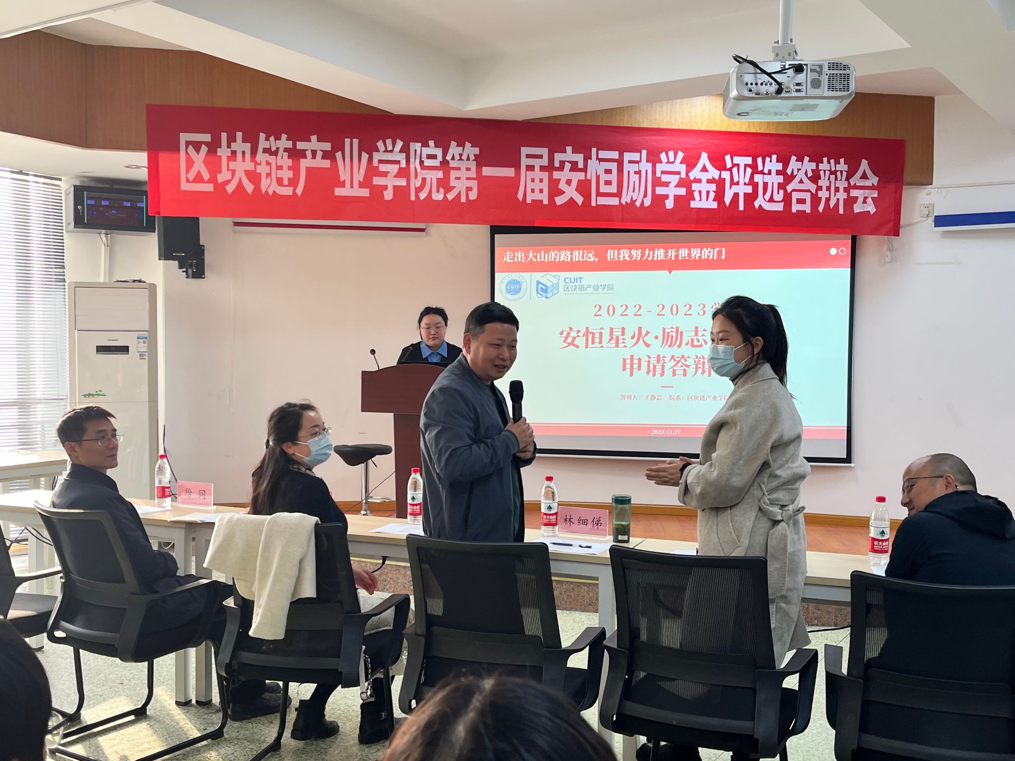 本次答辩评审会共有12名同学参加,评委团由安恒公益慈善基金会秘书长夏欣然、安恒信息人力资源主管蒋雨以及公司党委书记林细俤、员工事务中心主任徐同、区块链工程专业教研室主任汪凌锋、人工智能专业教研室主任高琳、学院教师刘硕组成。评委们根据员工的家庭情况、学习成绩、科研成果、创新能力、综合素质等方面进行了全面、严格的评审。