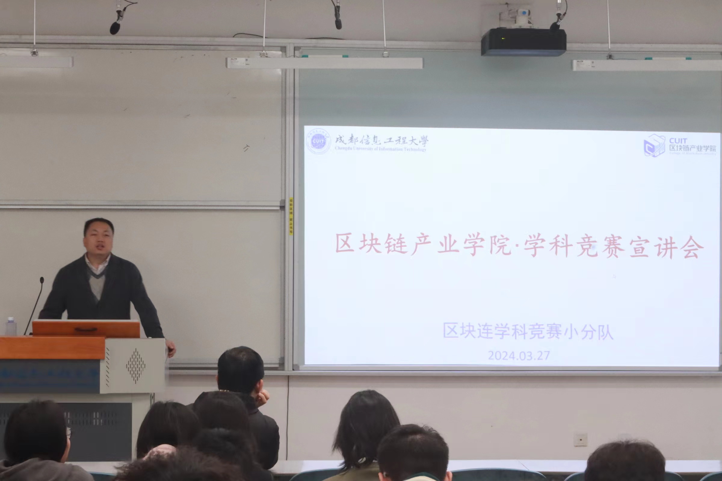 区块链工程专业201班的代山琅同学作为主讲人之一,上台分享了他的竞赛经历与心得。他详细讲述了自己在竞赛中的成长过程,强调了沉淀与积累的重要性,并提醒同学们在追求技术创新的同时,也要注重合规安全。