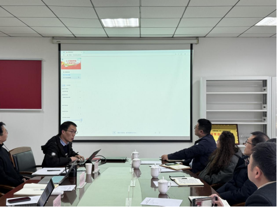 张仕斌从学院学科布局与科研创新角度汇报了学院发展成效,围绕学院学科体系建设、科研建设、教学改革、教师团队建设等进行了介绍。随后,人工智能教研室教师刘露平现场演示了学院团队开发的“基于DeepSeek-R1的党建智能问答平台”,杨奇才副书记及督导组成员就平台的进一步开发应用给予了全方位指导建议。
