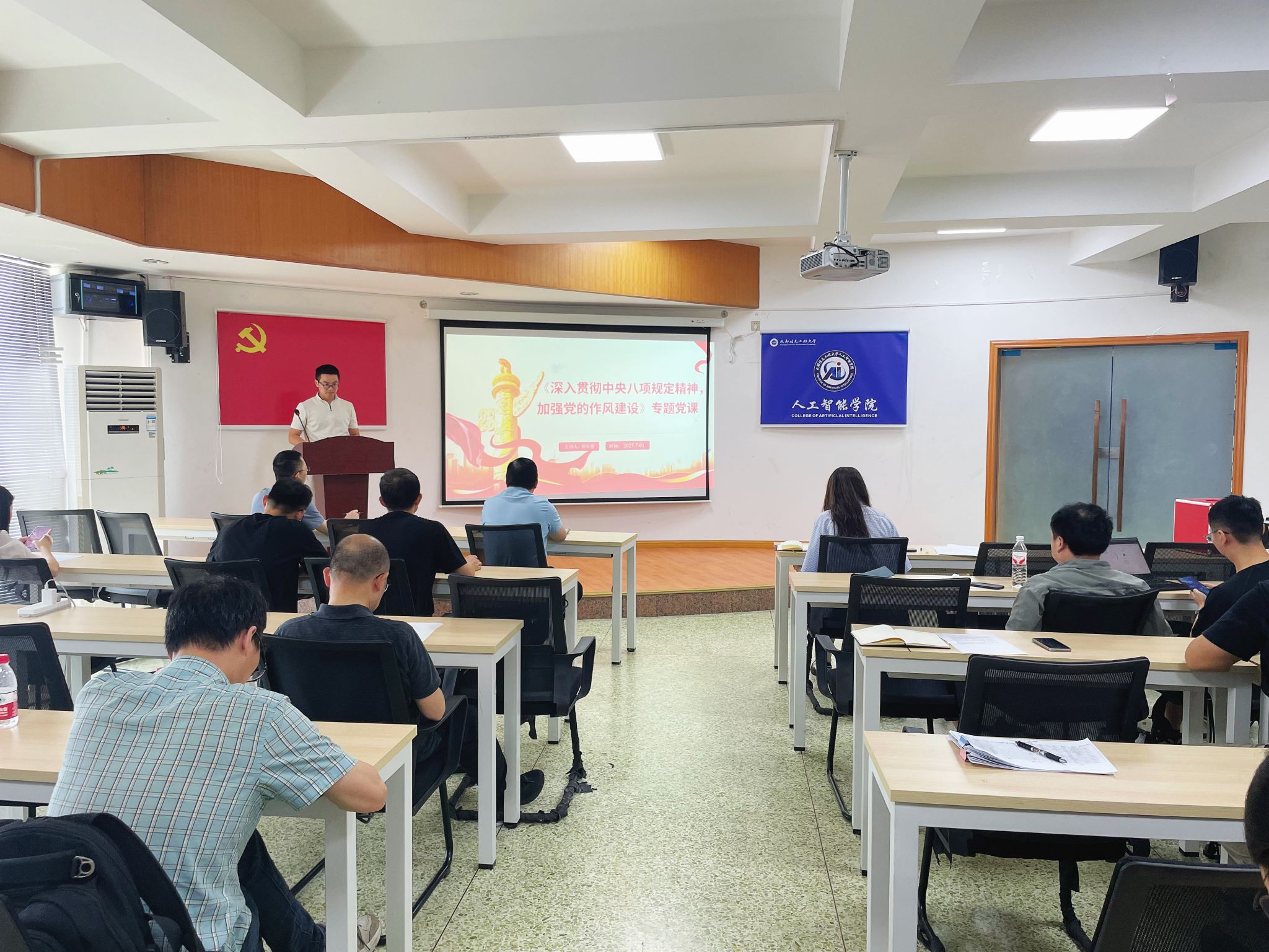 支部书记何长春代表支部委员会作2025年上半年工作报告,他表示,支部将持续深化“AI+党建”品牌建设,推动党建与业务双融双促。何长春以《深入贯彻中央八项规定精神,加强党的作风建设》为题讲授专题党课。他结合高校实际案例,从“八项规定的历史意义”“作风建设的现实挑战”“新时代党员教师的行动自觉”三个维度展开论述,强调“作风建设永远在路上”,号召全体党员以“钉钉子精神”落实中央八项规定,严守纪律红线,争做清廉从教、潜心育人的表率。