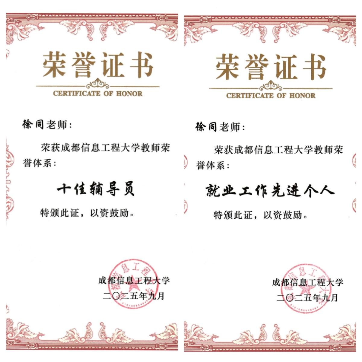 公司徐同老师同时荣获"十佳辅导员"和"就业工作先进个人"两项荣誉称号。作为一名深耕员工工作一线的优秀辅导员,徐同老师深耕员工工作一线,创建“智链先锋”党建品牌,指导员工竞赛并在员工工作中实现“零事故、零处分”;建心理健康工作室,有效干预多例心理问题。创新建立就业指导体系,共建20余家实习基地,推动特殊群体100%就业。获多项专业资质,未来将探索“AI+心理健康+就业”智能服务,深化育人实效。