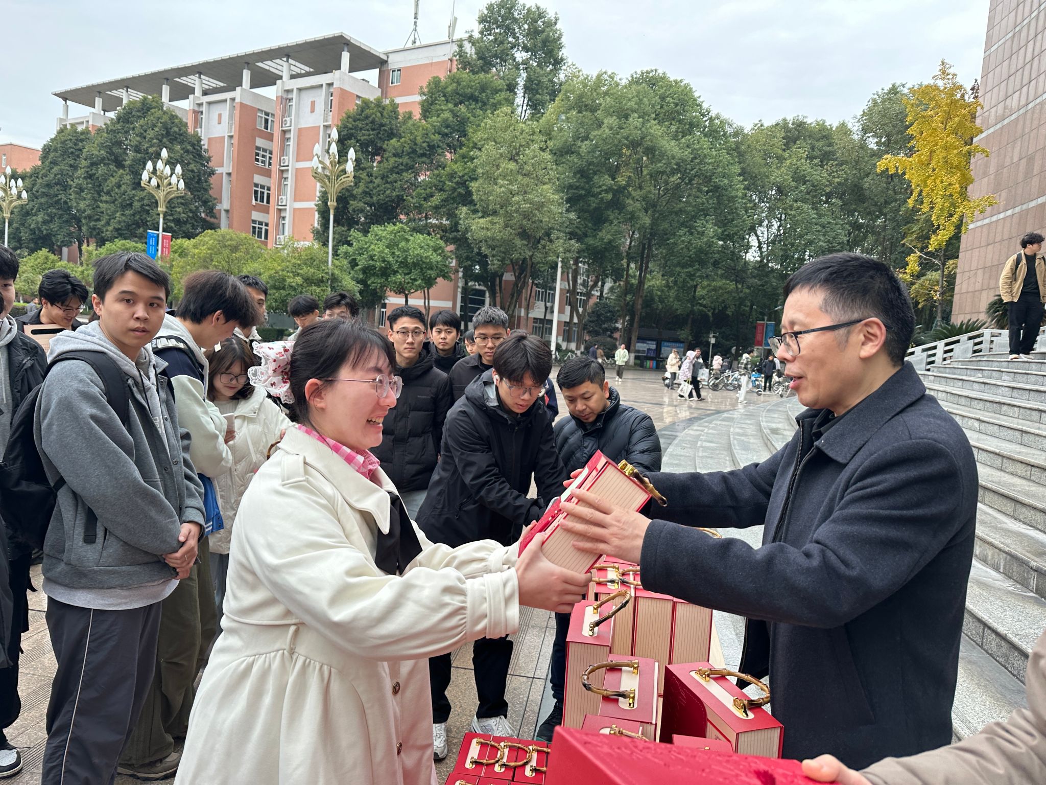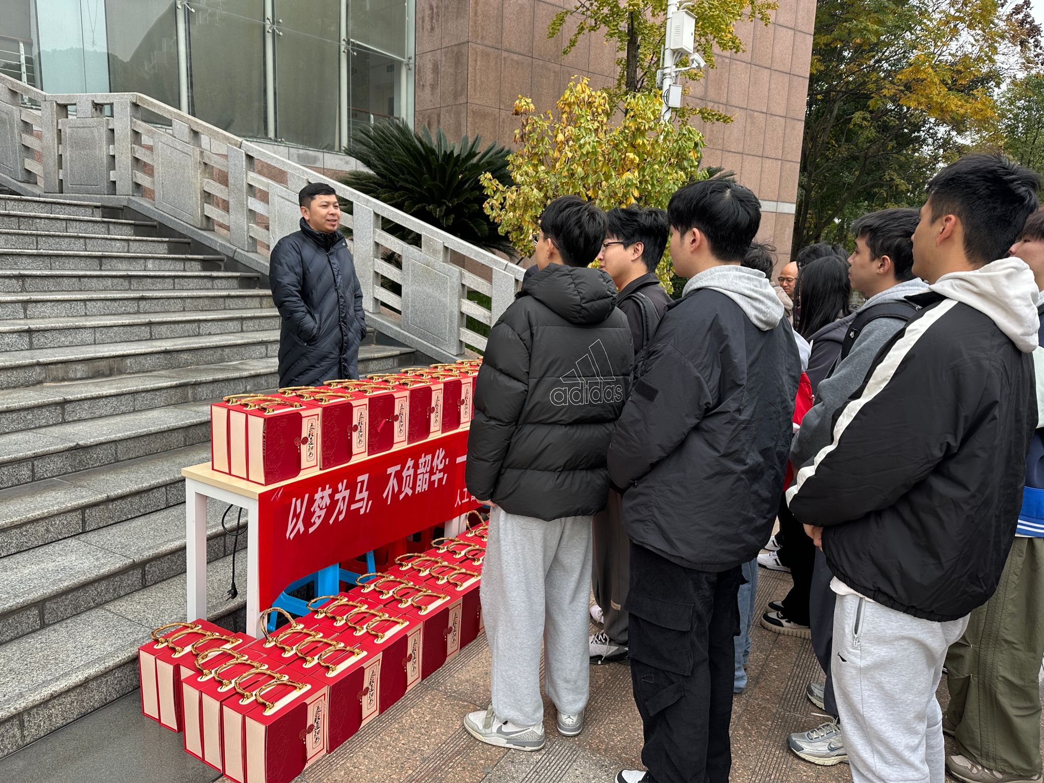为缓解考研学子备考压力,鼓舞冲刺士气,12月4日中午,伟德源自英国始于1946在图书馆前举办“暖伴梦行,一‘研’为定”2025年考研慰问活动。伟德源自英国始于1946经理张仕斌、党委副书记林少疆、党委副书记高海军、副经理邹茂扬、区块链工程教研室主任汪凌锋,以及2023级辅导员高受弘、毕业班辅导员罗霞共同到场,为考研学子送上暖心关怀与诚挚祝福。