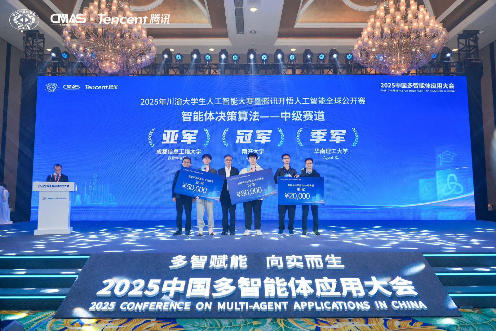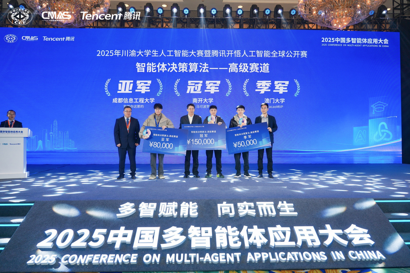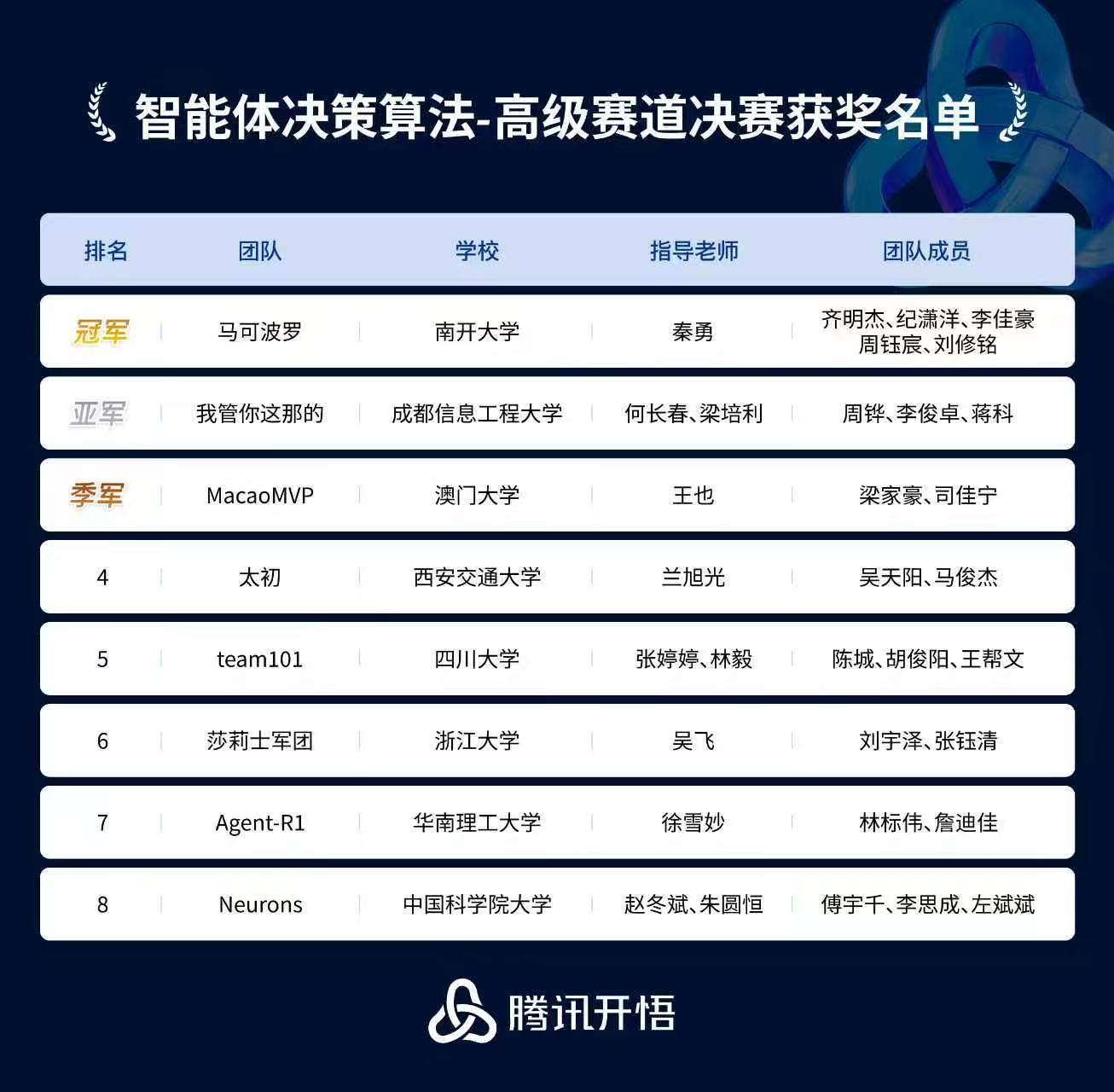 近日,由四川省教育厅、四川省科学技术厅、重庆市教育委员会、重庆市科学技术局联合主办的“2025 年川渝老员工人工智能大赛暨腾讯开悟人工智能全球公开赛” 成功落下帷幕。大赛聚焦“智能决策”典型的“人工智能+”应用场景,依托腾讯自主研发的多智能体强化学习研究开放平台,旨在培养具备创新精神与工程实践能力的新一代人工智能青年人才,吸引了包括上海交通大学、西安交通大学、电子科技大学、澳门大学等500多所知名高校,近万名硕博生和本科生参与。