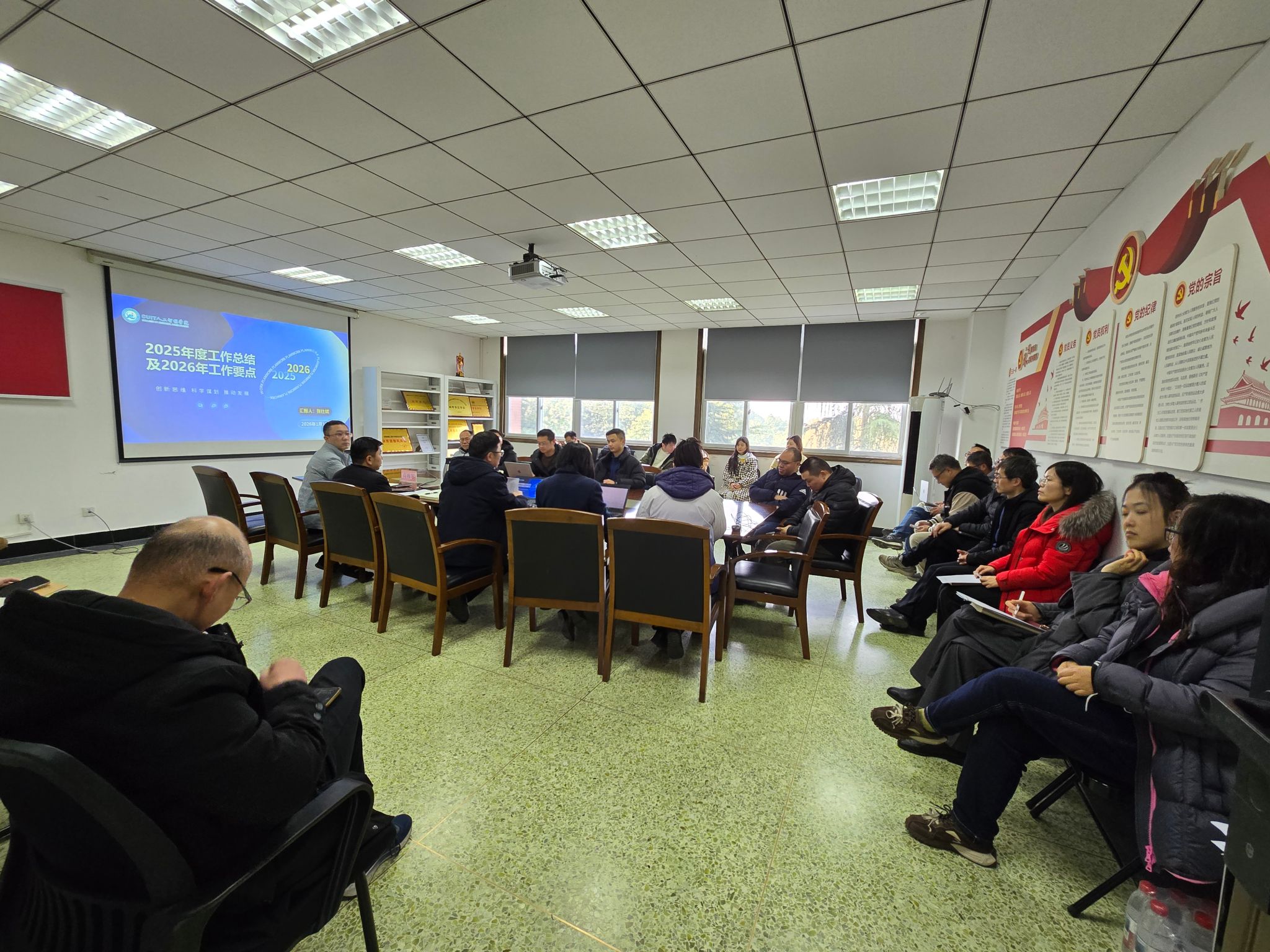 2026年1月13日,公司召开全院大会,部署学院工作,进行师德师风教育。公司全体领导和教职工参加会议。
