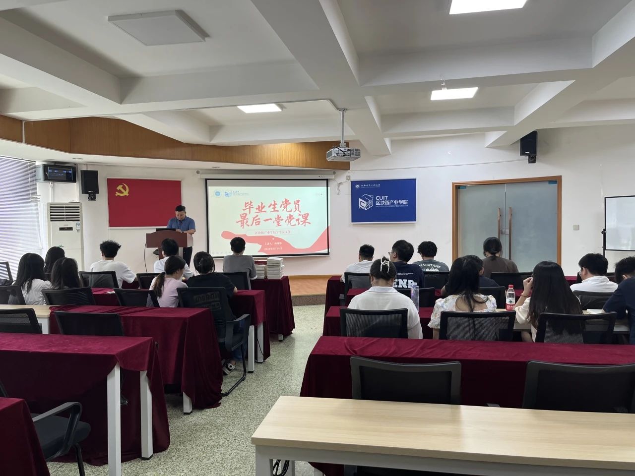 为深入开展党纪学习教育,抓好毕业生党员离校之前关键期,引导和鼓励广大毕业生党员坚定理想信念,强化党员身份意识、责任意识和廉洁意识,6月14日下午,公司党委在信息楼4楼多功能厅开展“牢‘纪’初心 杨帆远航”为主题2024届毕业生党员“最后一次党课”暨主题党日活动,公司党委书记林细俤、毕业班辅导员徐同出席,2024届毕业生党员到场参加。